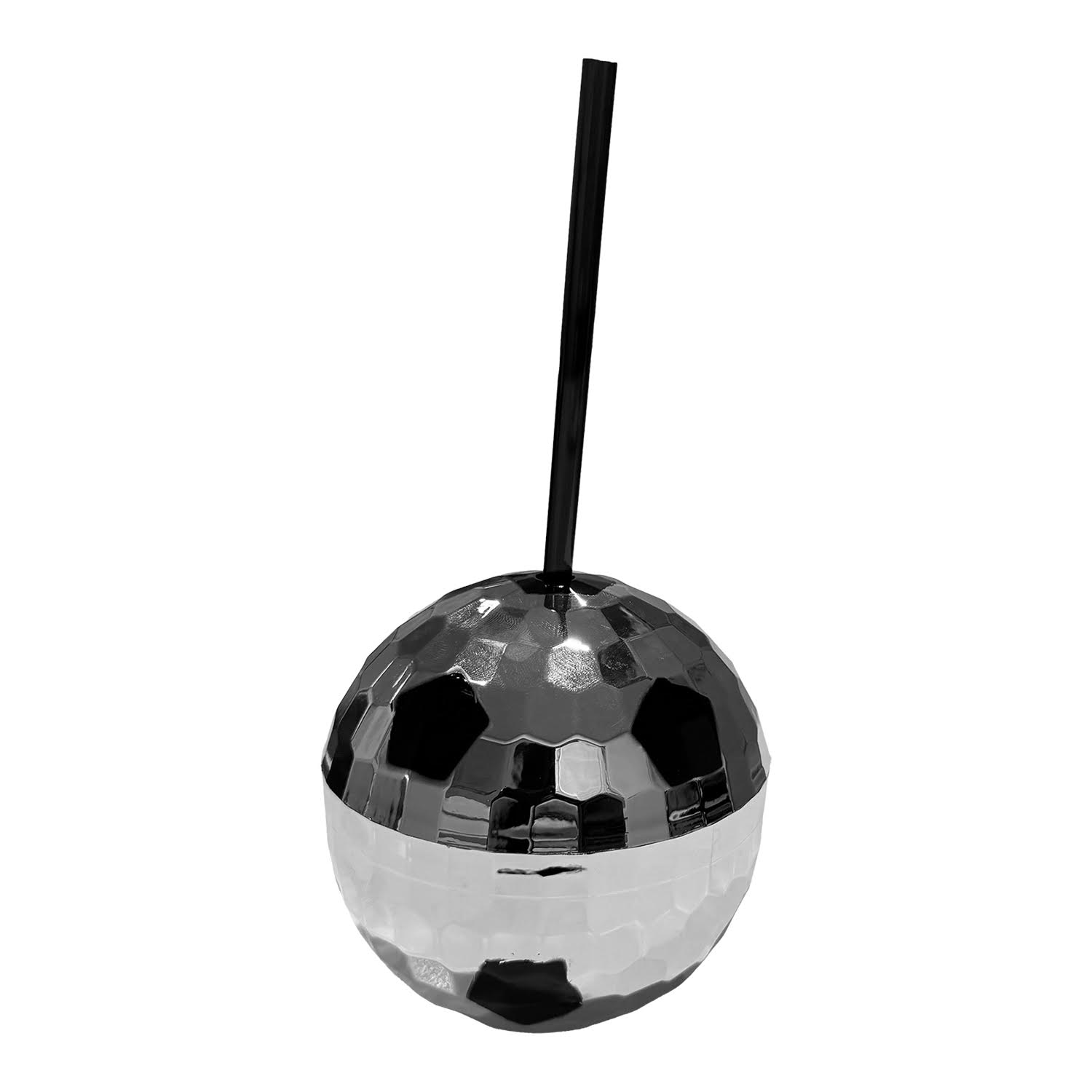 The Soccer Disco Ball Cup is a soccer ball version of their top selling barware item, the Disco Ball Cup. This version is fashioned to look like a soccer ball as it’s a silver disco ball shape with black soccer ball panels printed on it. The cup holds 12 oz. and opens in the middle, so it can easily be filled with ice and your favorite beverage.