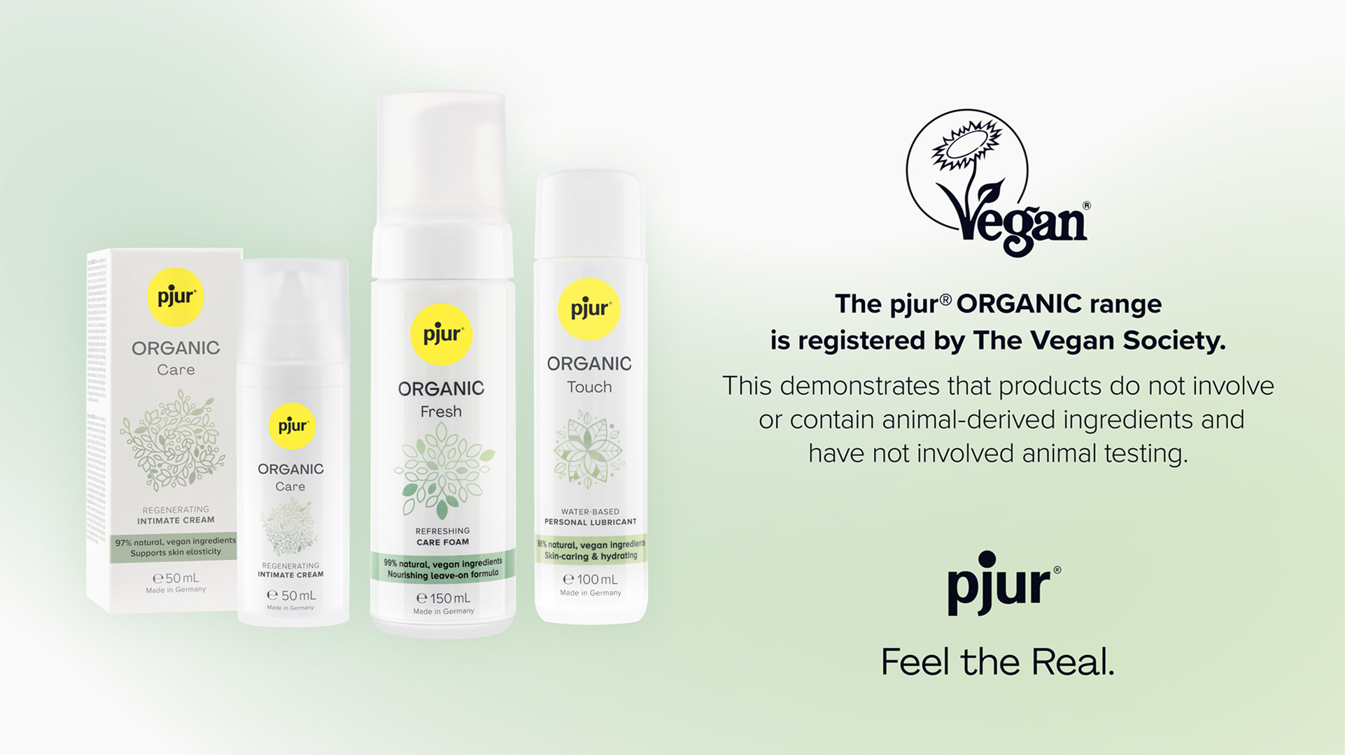 After pjur ORGANIC Care was already awarded the Vegan Trademark, pjur ORGANIC Fresh and pjur ORGANIC Touch now also carry this internationally recognized seal. This further reinforces the brand’s